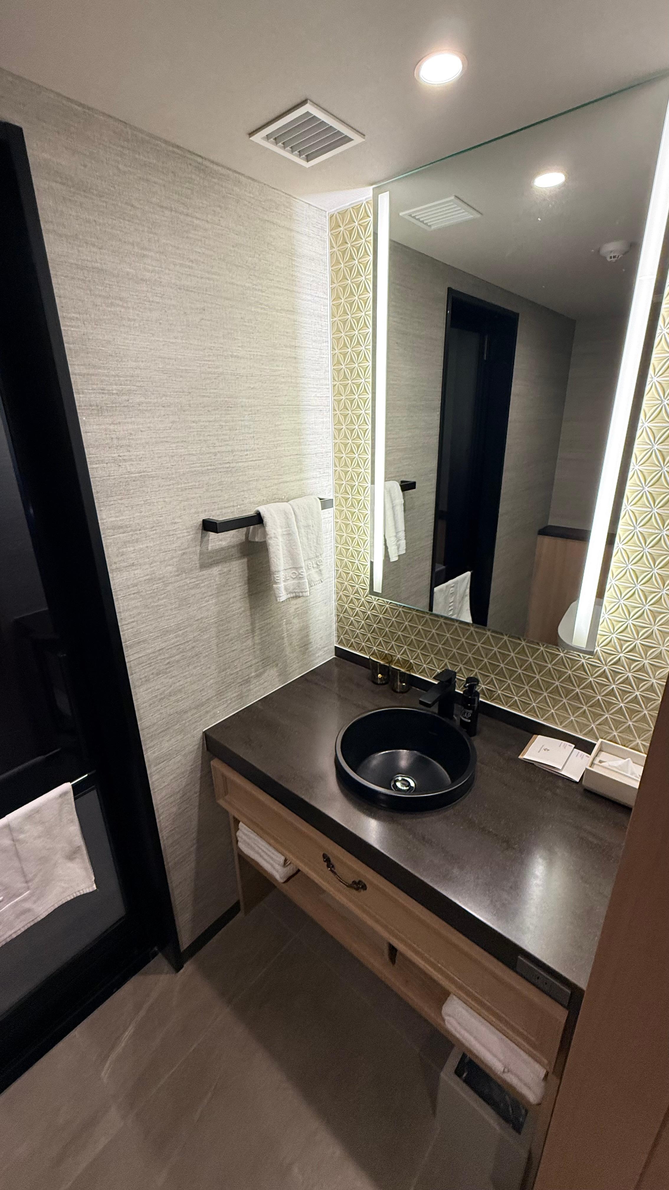 It's clean, well designed. Room is spacious, toilet and shower are separated. There's a bathing area, though it's not onsen, it's comfortable especially the snack area outside is well stocked up... Ice stick, nuts, hot/cold drinks.