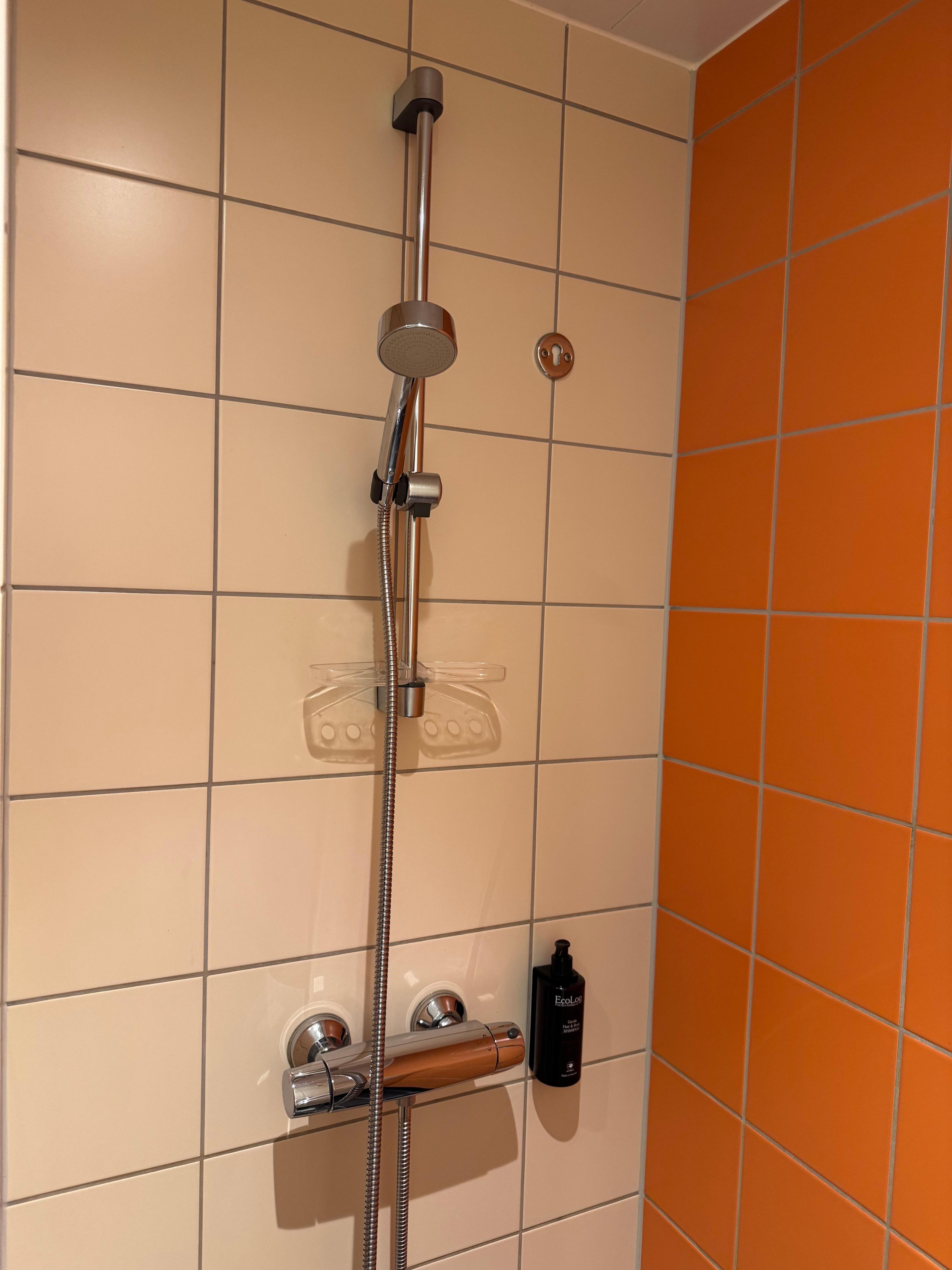 Badeværelset kunne godt trænge til en renovering, da flere fliser i brusekabinen var gået i stykker, så der var hul ind bagved.