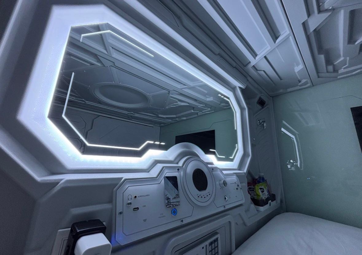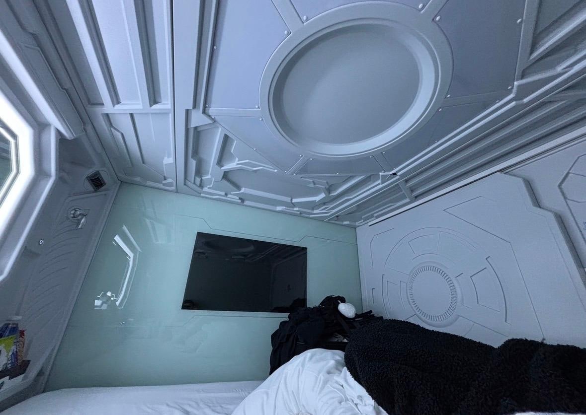 Dorm area clean and as expected with sufficient storage space for belongings. Capsules 'compact', in-room safe unusable as the matress is tight against it.