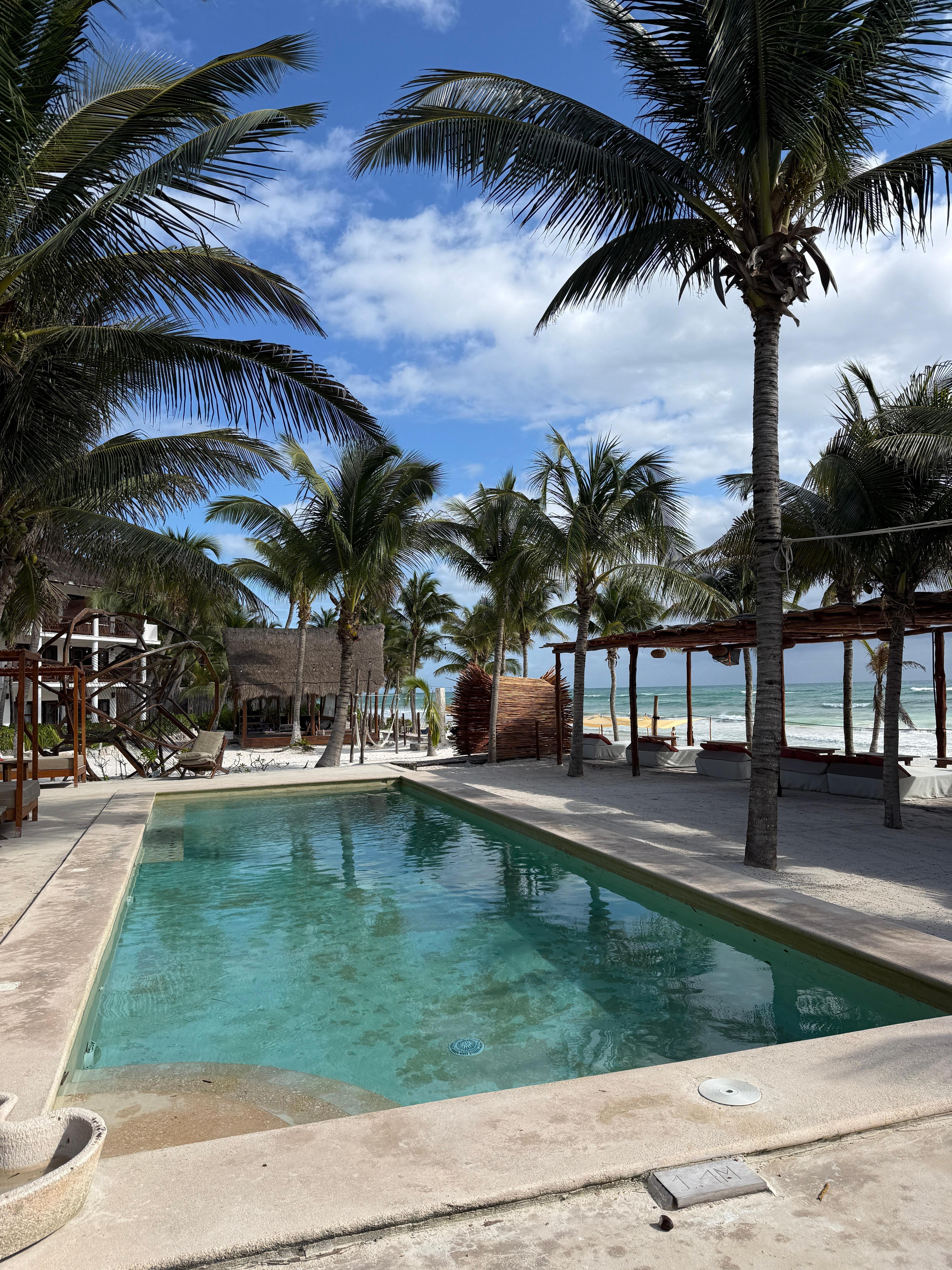 This was a great place on the beach, although the cleanliness standards were not up to par the customer service made up for it. They did put us in a different rooms after realizing the initial room was not clean and we still had to clean a bit. The hotel had a great beach party on Sunday seems like the place to be. I’ve been all over Mexico and and I think Tulum is interesting, love the cenotes and culture but the police checkpoints and potential corruption is evident just in this area, just something to be aware of. There also was quite a bit of sargassum (seaweed) this time of year.